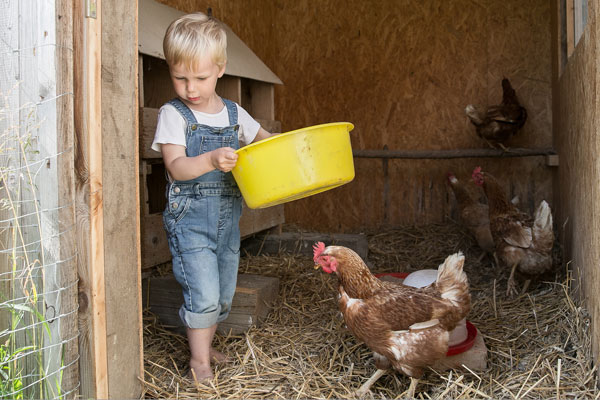 Unser vierbeiniges Familienmitglied Aida und unsere 5 fleißigen Hühner leben mit uns am Hof.